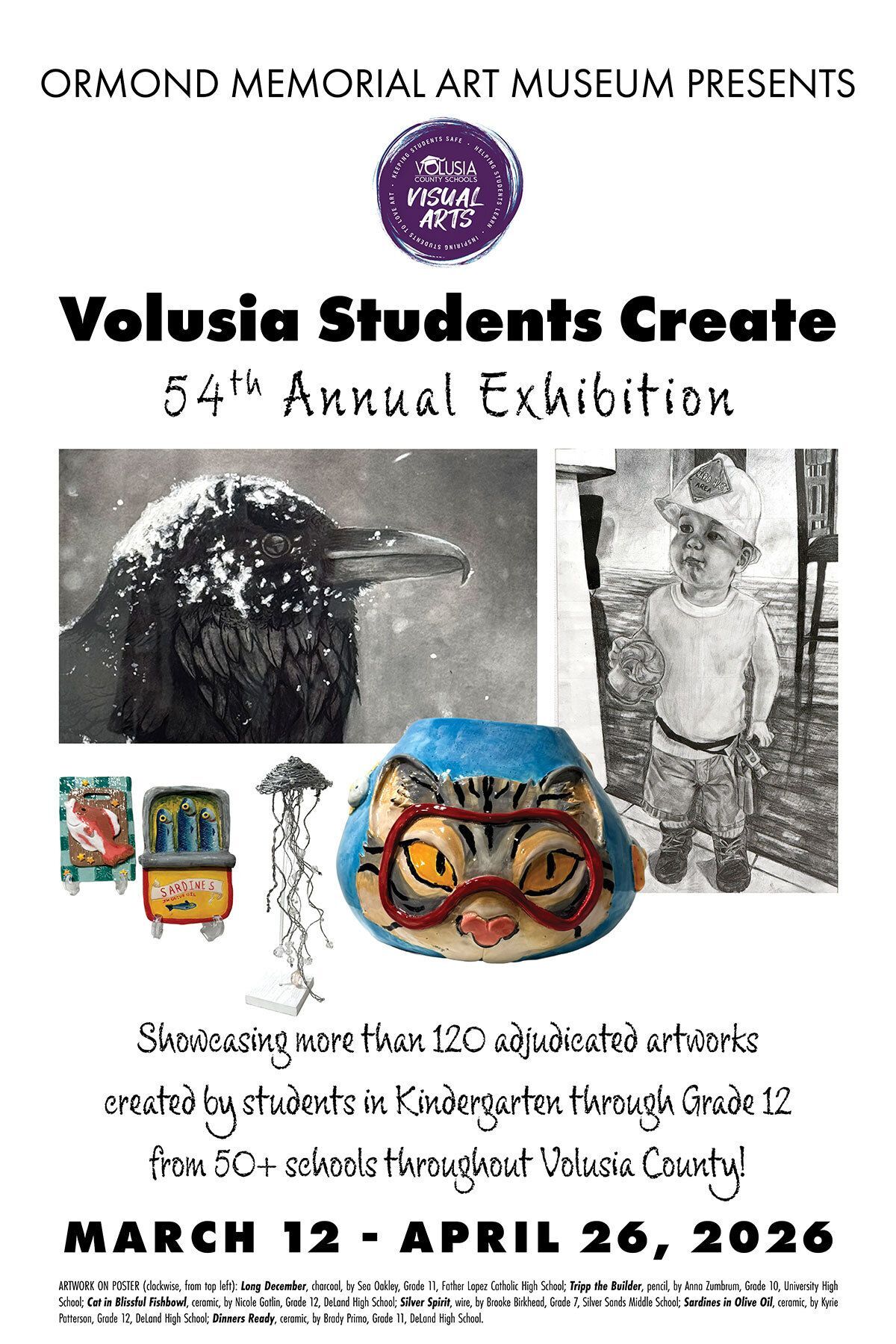 Join us to celebrate the opening of the 54th Annual Volusia Students Create exhibition and its young, talented artists. The evening will include awards and light refreshments! This event is FREE and open to the public.